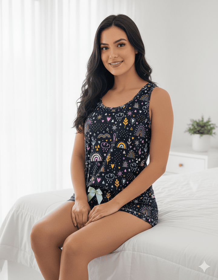 Vive noches llenas de frescura con nuestra pijama Itava, confeccionada en tela piel de durazno, famosa por su suavidad aterciopelada, ligereza y comodidad. Su diseño combina blusa tipo esqueleto y short estampado, una opción ideal para quienes buscan libertad y frescura al descansar.
